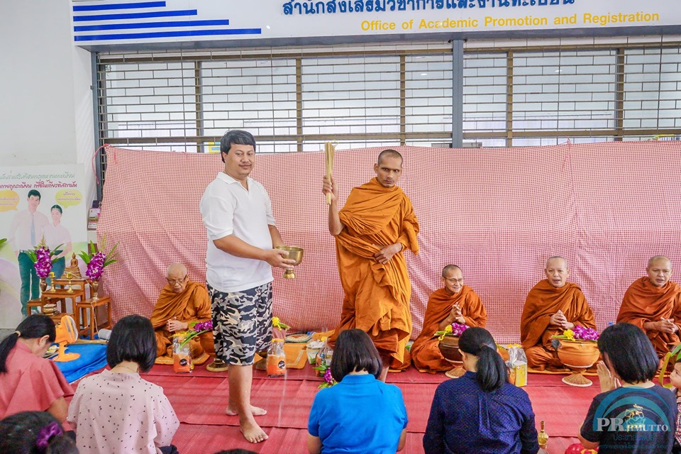 สำนักส่งเสริมวิชาการและงานทะเบียน จัดกิจกรรมทำบุญถวายภัตตาหารเช้าแด่พระภิกษุสงฆ์ จำนวน 9 รูป โดยมีคณาจารย์และบุคลากร มาร่วมทำบุญ เพื่อความ