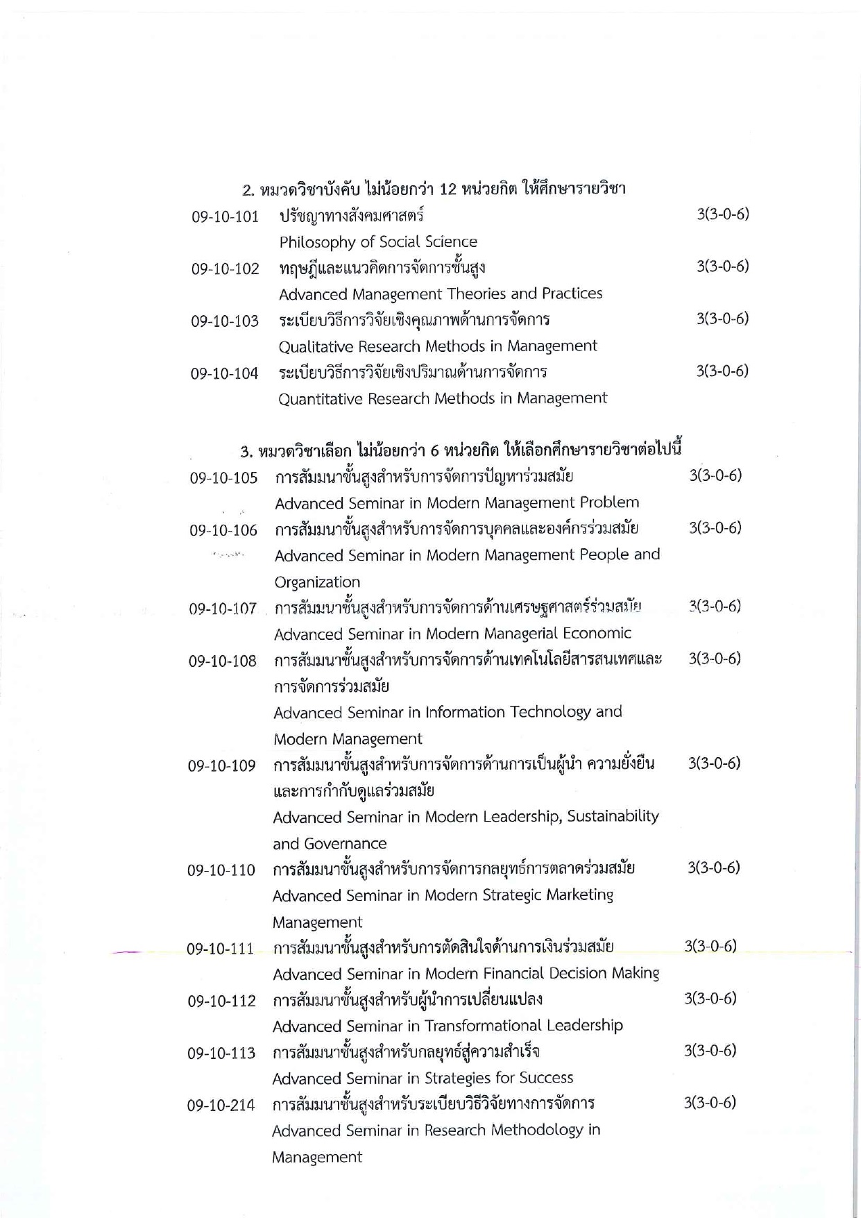 รายวิชา Course MM การจัดการมหาบัณฑิต