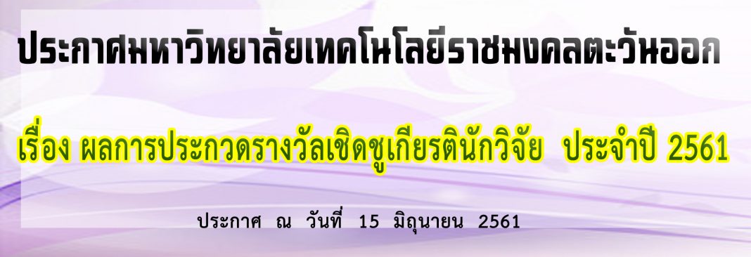ประกาศมหาวิทยาลัย เรื่อง ผลการประกวดรางวัลเชิดชูเกียรตินักวิจัย ประจำปี 2561 ณ วันที่ 15 มิถุนายน 2561 ผู้เข้าชม: 6