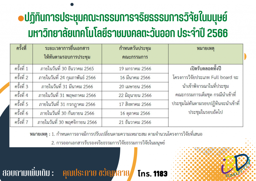 ปฏิทินเปิดรับประจำปี 2567ปฏิทินเปิดรับประจำปี 2566 ปฏิทินการจัดประชุมกก.จริยธรรมการวิจัยในมนุษย์ ปี 2567 ปฏิทินการจัดประชุมกก.จริยธรรมการวิจัยในมนุษย์ ปี 2566 ผู้เข้าชม: 10