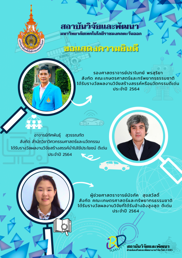ขอแสดงความยินดีนักวิจัยที่มีผลงานวิจัยดีเด่น ประจำปี 2564 By adminเชิดชูเกียรตินักวิจัย Read More เมษายน 21, 2024 Love0